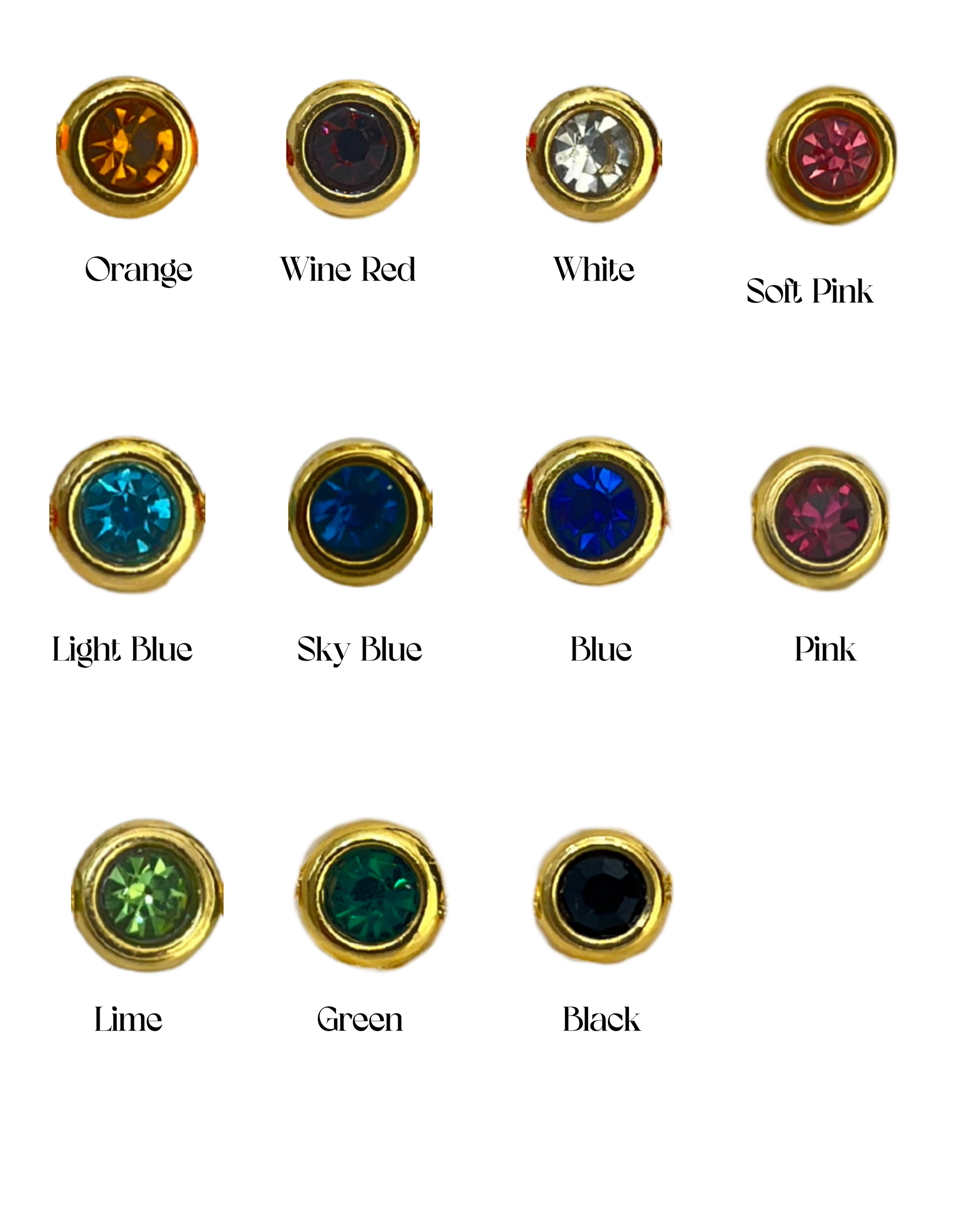 Available in various thread and stone colors. You choose the combination you want, you can choose the same color of the stone for the thread or combine it with a different color.